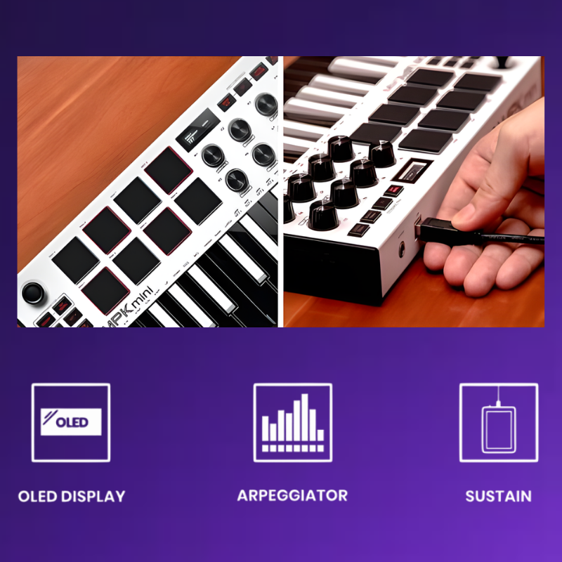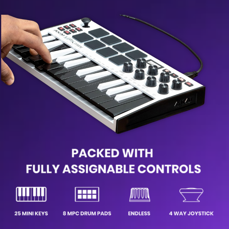 - Music Production and Beat Maker Essential -USB powered MIDI controller with 25 mini MIDI keyboard velocity-sensitive keys for studio production, virtual synthesizer control and beat production