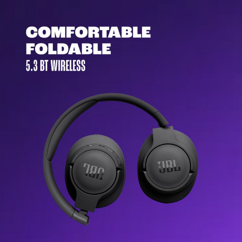 The JBL Tune 720BT headphones stream powerful JBL Pure Bass sound for up to 76 hours, thanks to the latest 5.3 BT technology. Quickly rechargeable, they sit comfortably on your head even after hours of listening pleasure. With a flat-folding design, the JBL Tune 720BT easily fits in your backpack to follow you everywhere.