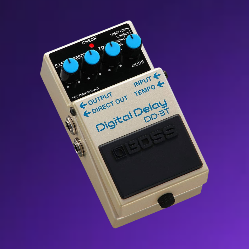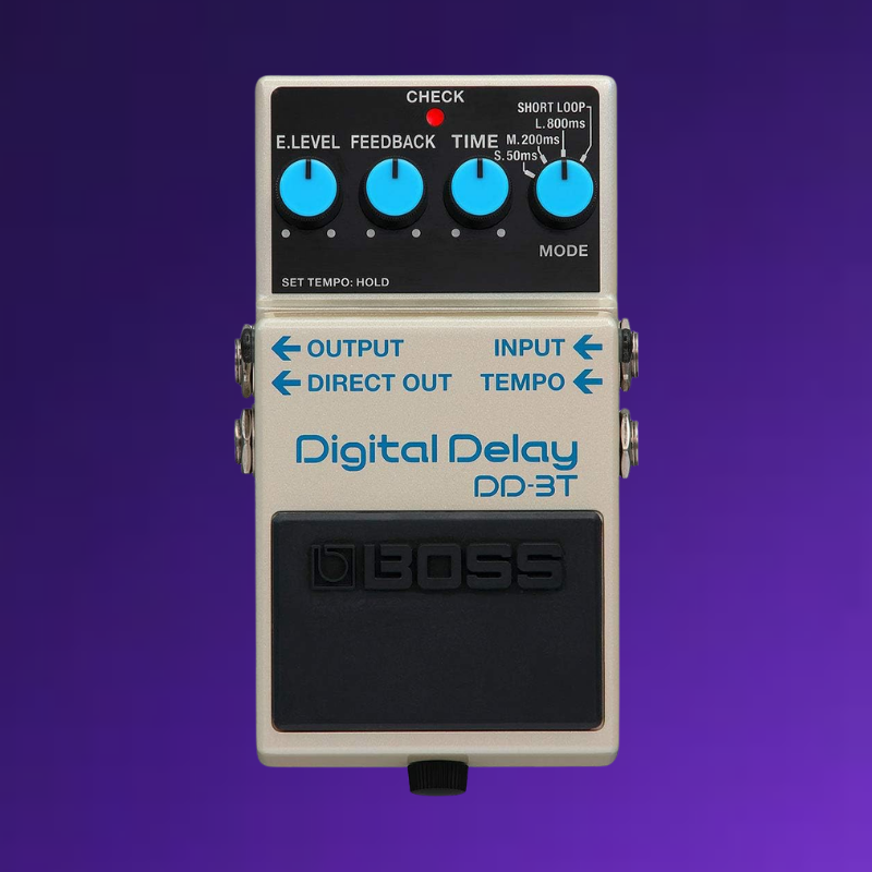BOSS’s iconic DD-3 Digital Delay has been a pedalboard staple since 1986, loved everywhere for its great sound and simple operation. With the DD-3T, we’ve updated the classic stomp with enhanced functionality while fully retaining the original’s sound and control layout. It’s now possible to tap in delay tempos using the onboard switch or an external one, with your choice of three beat subdivisions. The direct output jack has been moved next to the main output, providing easier connectivity for wet/dry setups.