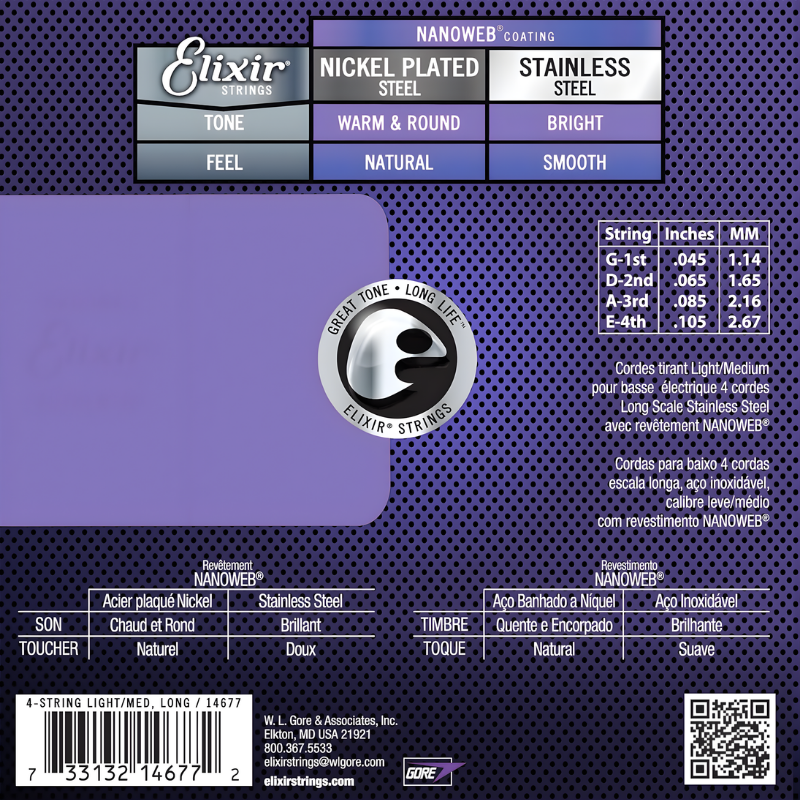 Elixir Electric Bass Stainless Steel Strings are expertly engineered to provide a longest-lasting bright tone with deep, but not shrill, lows. Enhance your playing experience thanks to the comfortable, smooth feel of Elixir Strings combined with greater durability and response even during hard-hitting attacks. Don’t let anything get in the way of being able to play whenever and wherever creativity strikes.