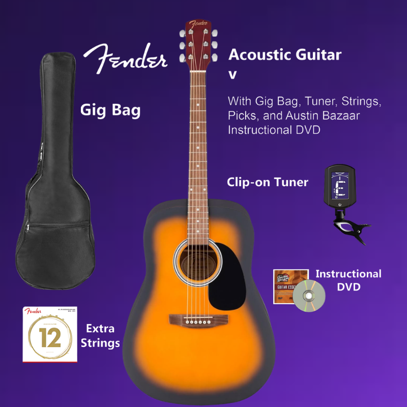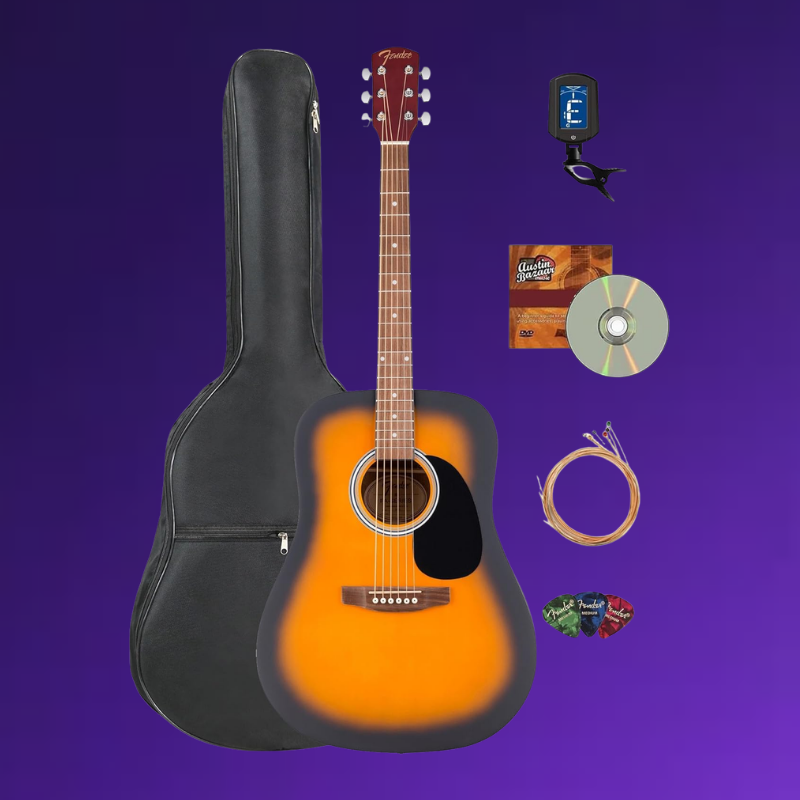 - EVERYTHING IN ONE BOX: Austin Bazaar appreciates your purchase by adding essential accessories, this bundle includes a gig bag to protect your guitar during travel, a tuner to keep your instrument in tune, extra strings and picks for future use and an Austin Bazaar instructional DVD to help get tips and guidance while playing your instrument
