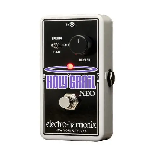 The EHX Neo Holy Grail is an update to our wildly popular compact digital reverb, the Holy Grail. It contains three reverb algorithms: SPRING, HALL, and PLATE. All three algorithms were designed and tailored for the electric guitar, but they work equally well on most instruments and voices.