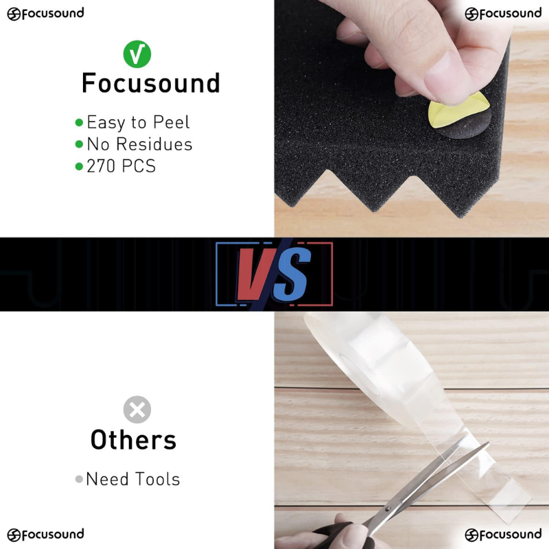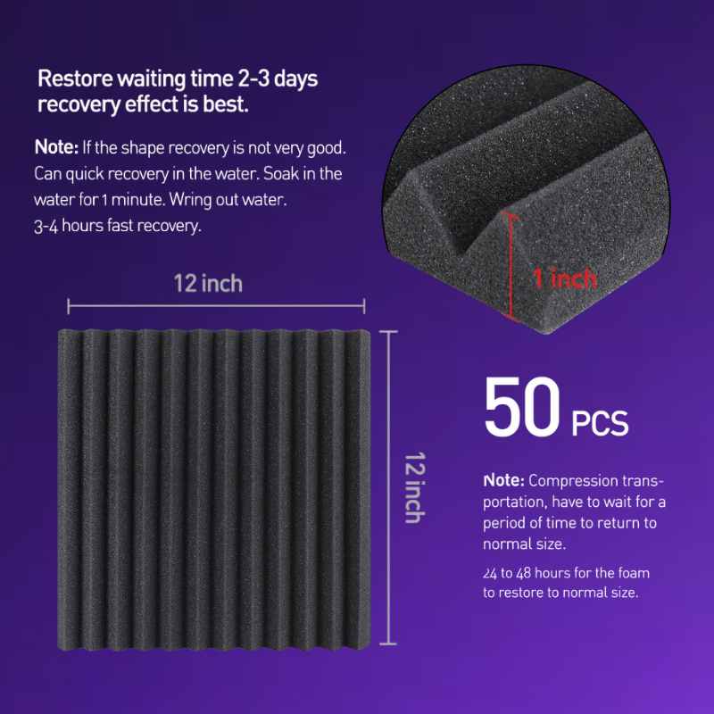 - Soundproofing – Acoustic foam panels triangular grooves structure for better noise absorption, helps to reduce and absorb unwanted echoes, waves, reverb and flutter echoes for better recording effect.